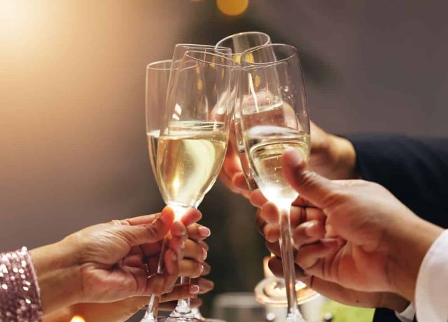 00.00: GODT NYTÅR med champagne, der serveres til nytårsklokkerne